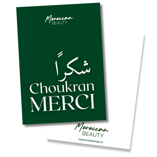 Chaque commande est soigneusement présentée dans une boîte Moroccan Beauty, prête à offrir. Complétez votre coffret avec un sac élégant et une carte porteuse d’un message unique.